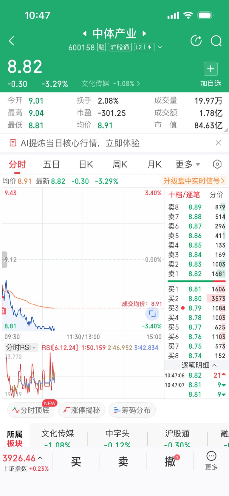 $中体产业(SH600158)$ 托单明显,明知山有虎 偏向虎山行。