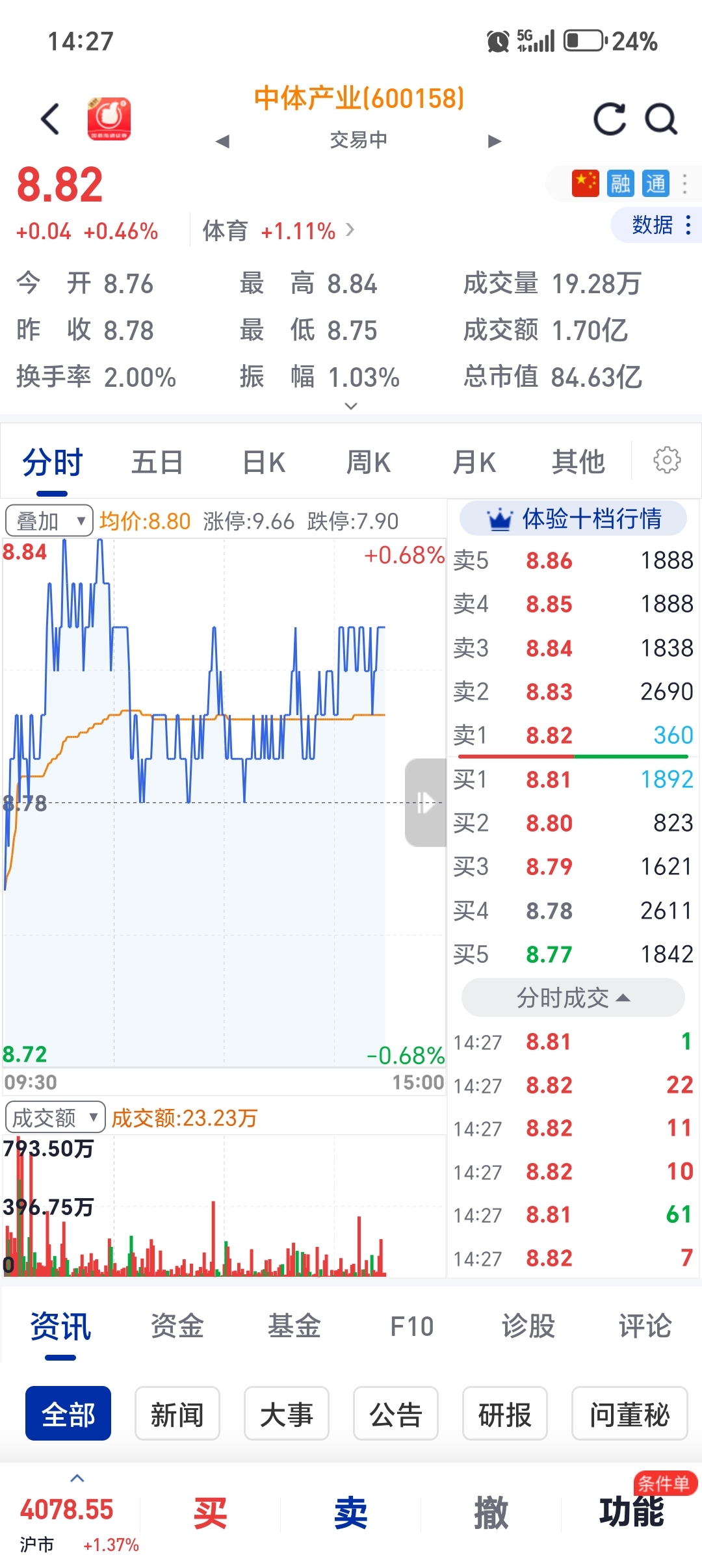$中体产业(SH600158)$ 1888绝对是有意的,