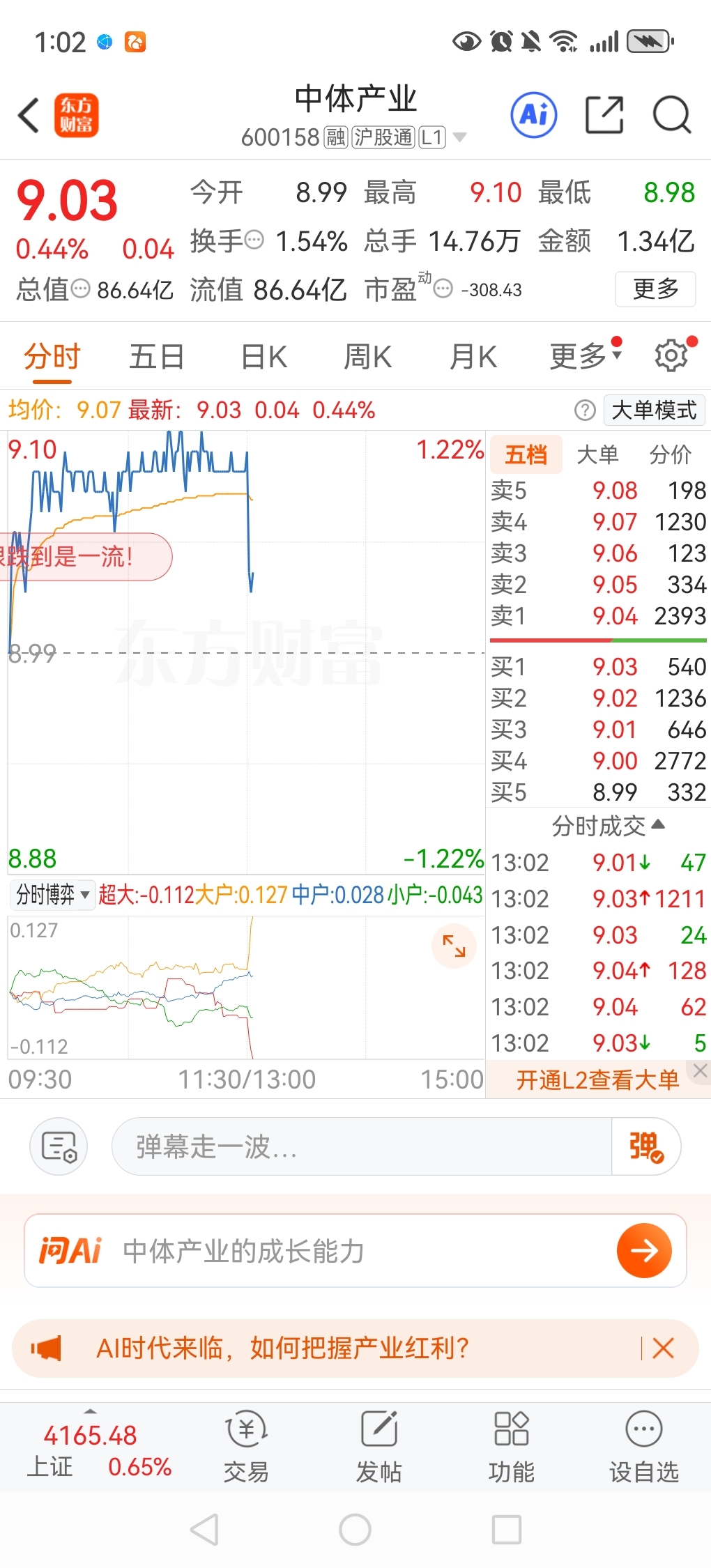 $中体产业(SH600158)$ 不跟涨跟跌到是一流啊!