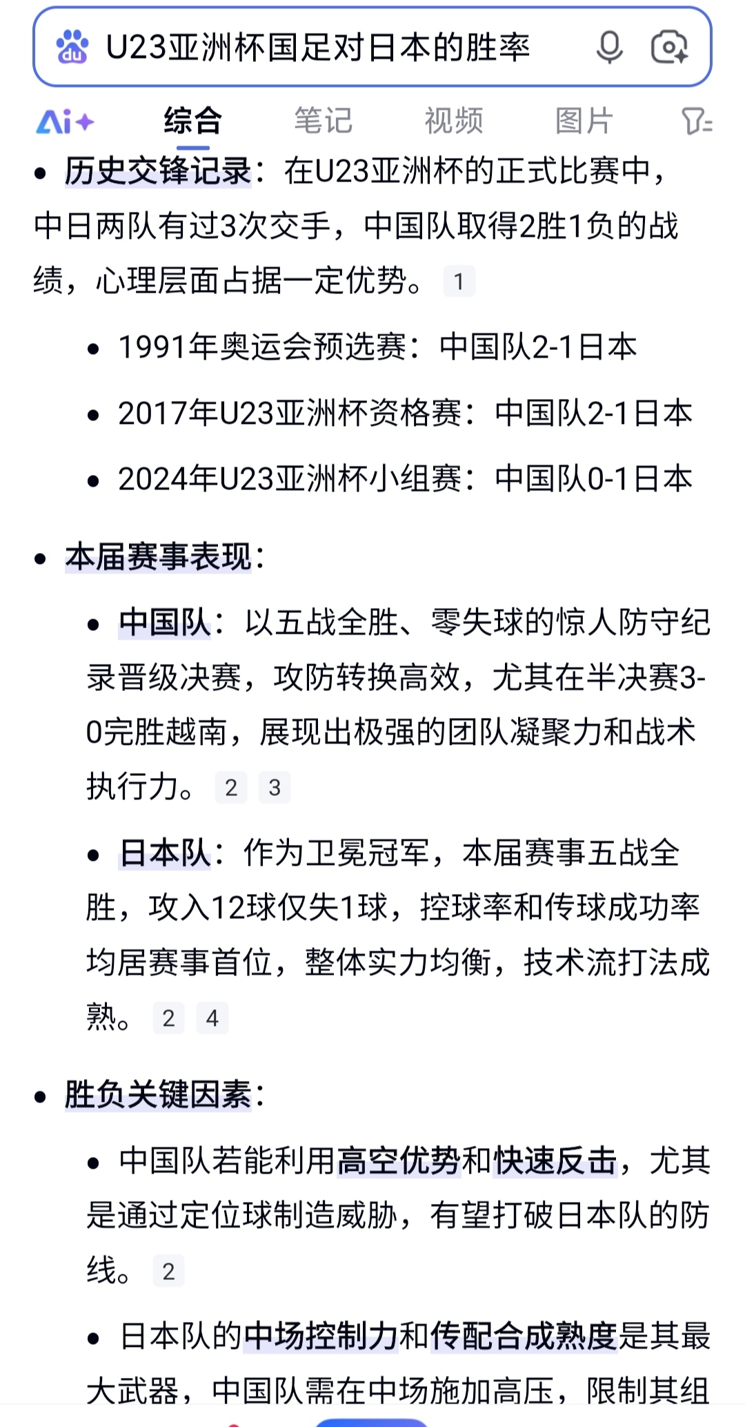 AI分析中国队胜率只有20~30%,但U23历史战绩中国队胜的多一点,心理层面中