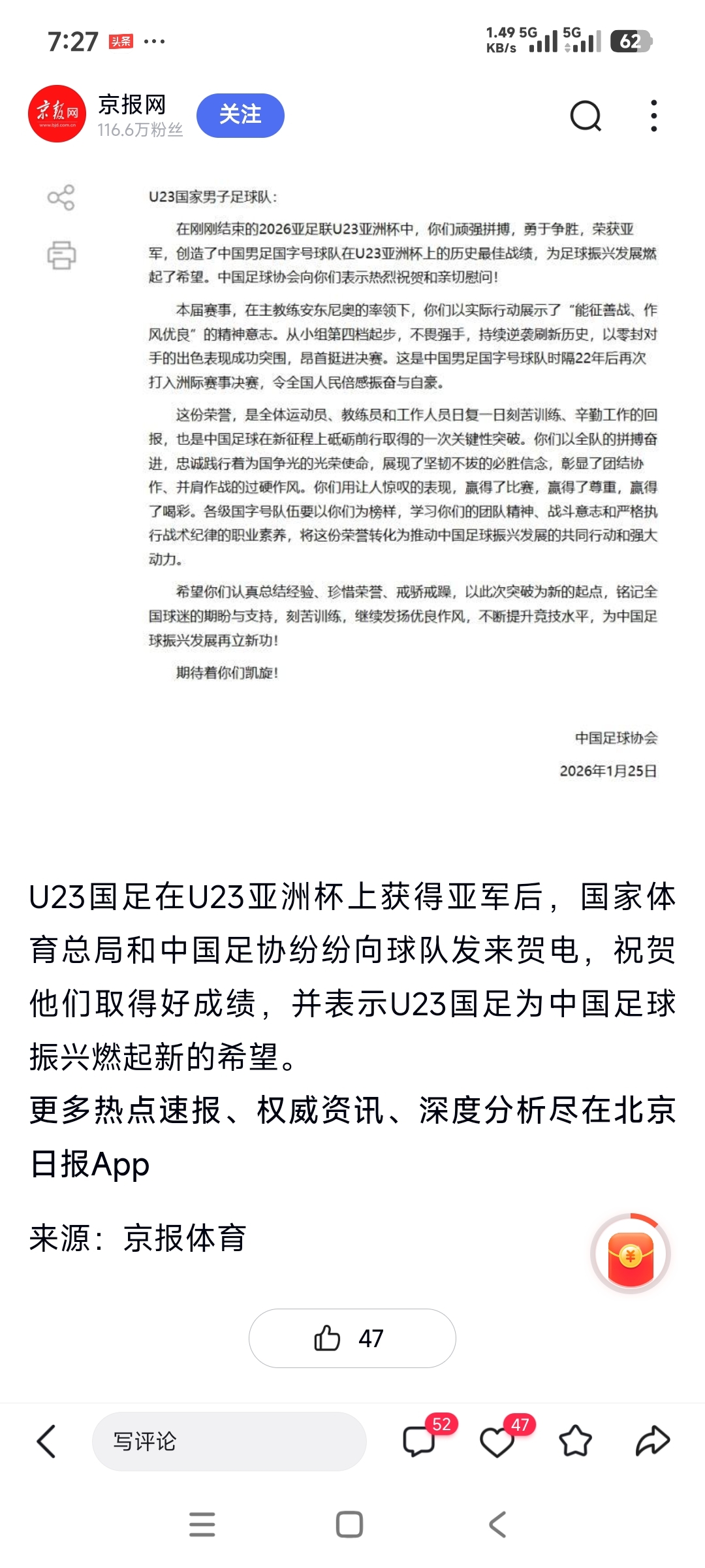 我能的期望不能太高,已经很好了!祝贺U23取得好成绩
