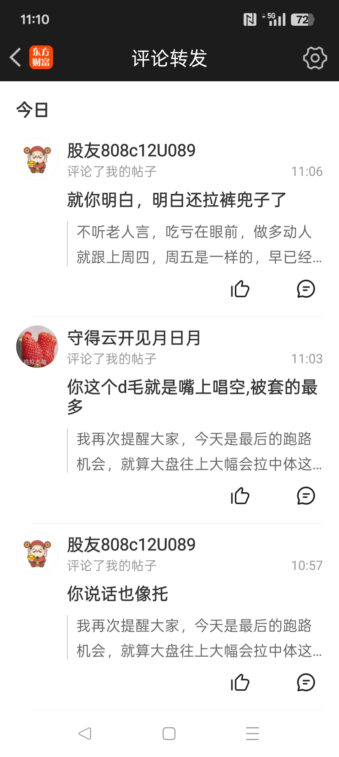 这两个骂我的就是被深度套牢的,有一个割肉了,然后又追高买进这种二哈,活该。