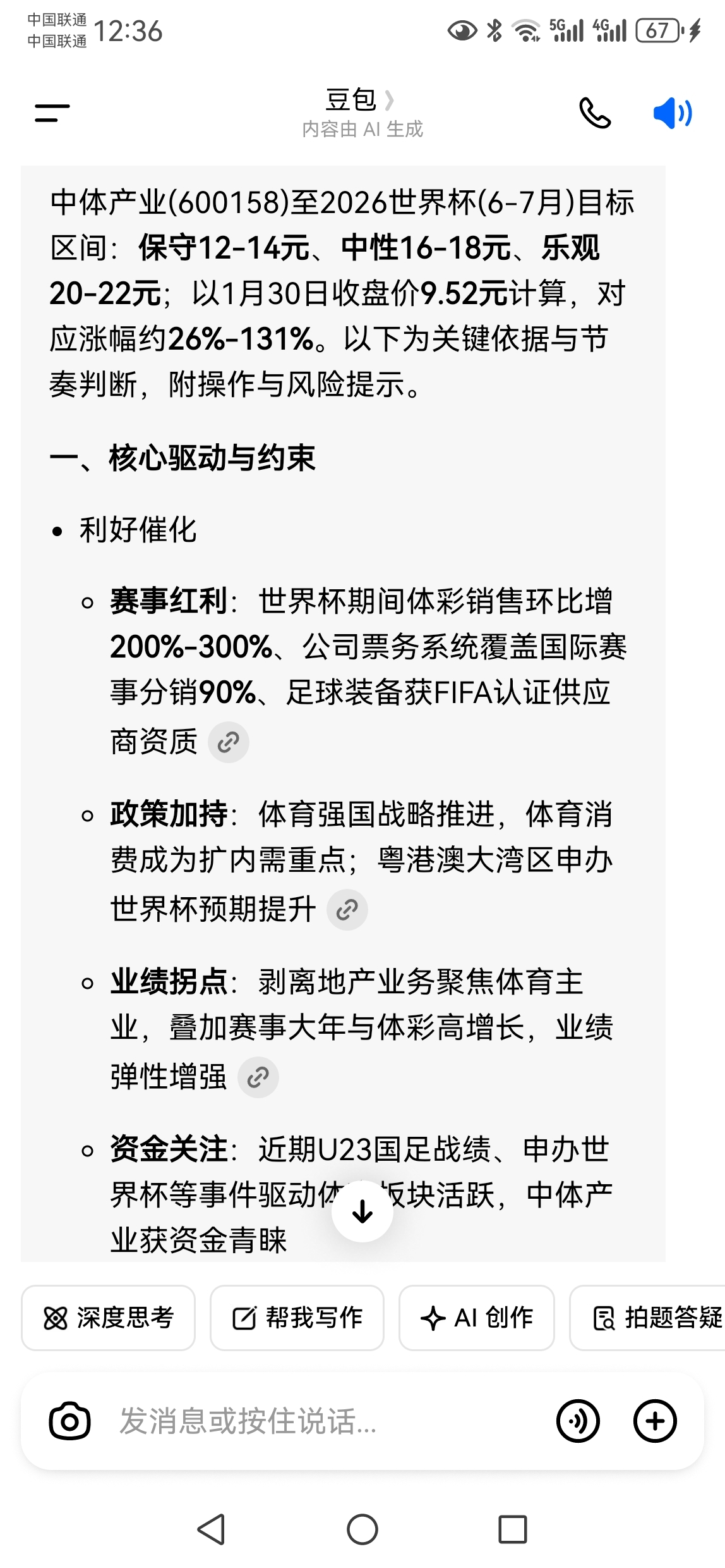 $中体产业(SH600158)$ 外行人只能看到业绩预亏,内行人才知道这是利好,今年开始体育赛事逐渐火热,现在地产出清全力搞体育是走的大趋势,今年只是地产计提才亏损的,主营业务还是盈利大几千万,今年的世界杯会前所未有的热度!