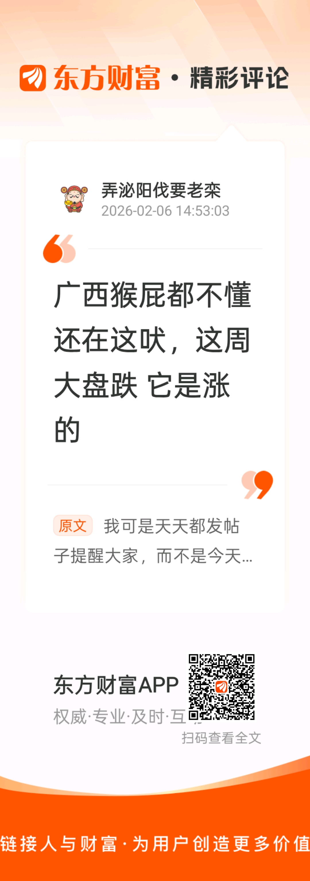 温馨提示: 1.根据《证券法》规定,禁止编造、传播虚假信息或者误导性信息,扰乱证券市场;2.用户在本社区发表的所有资料、言论等仅代表个人观点,与本网站立场无关,不对您构成任何投资建议。用户应基于自己的独立判断,自行决定证券投资并承担相应风险。《东方财富社区管理规定》