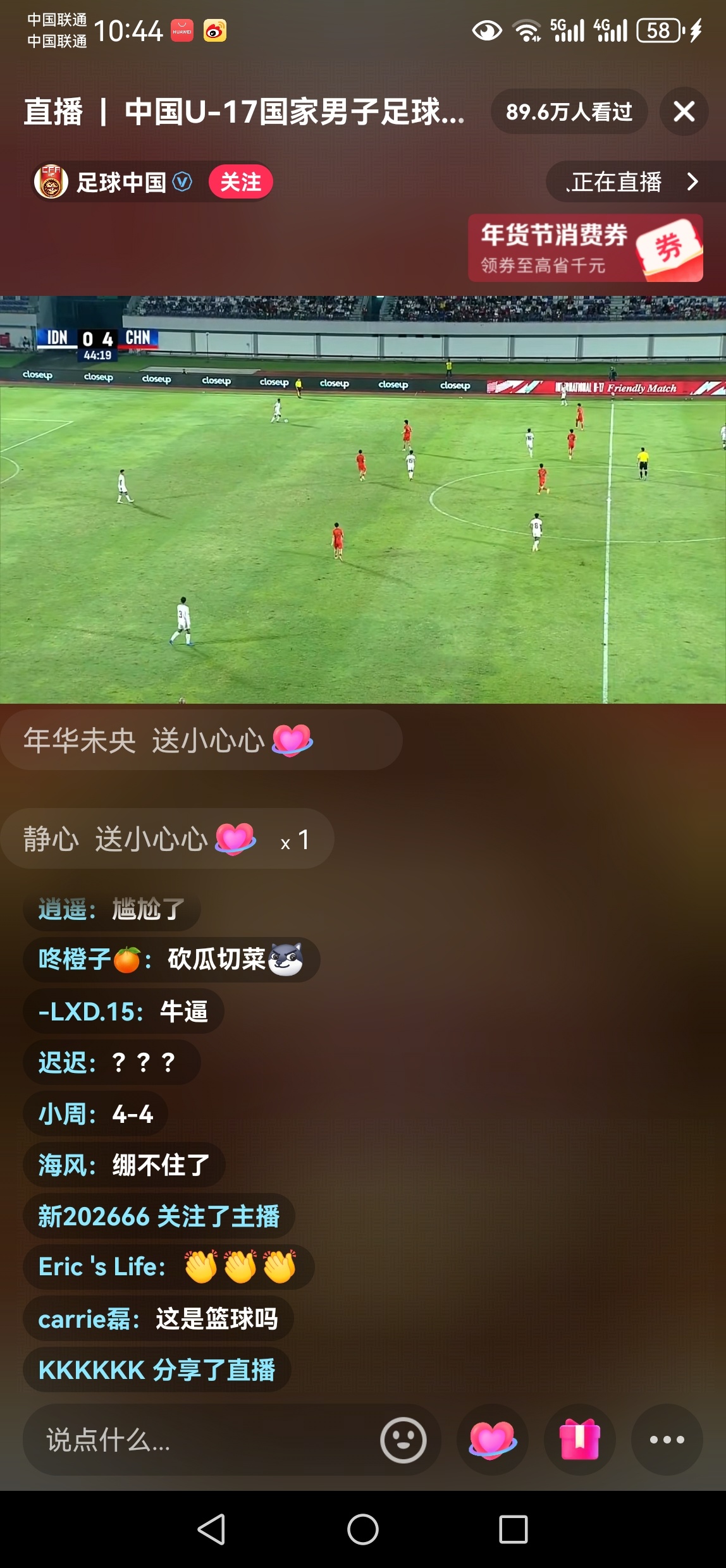 $中体产业(SH600158)$ U17印尼-中国0:4,中国队上半场领先4球
