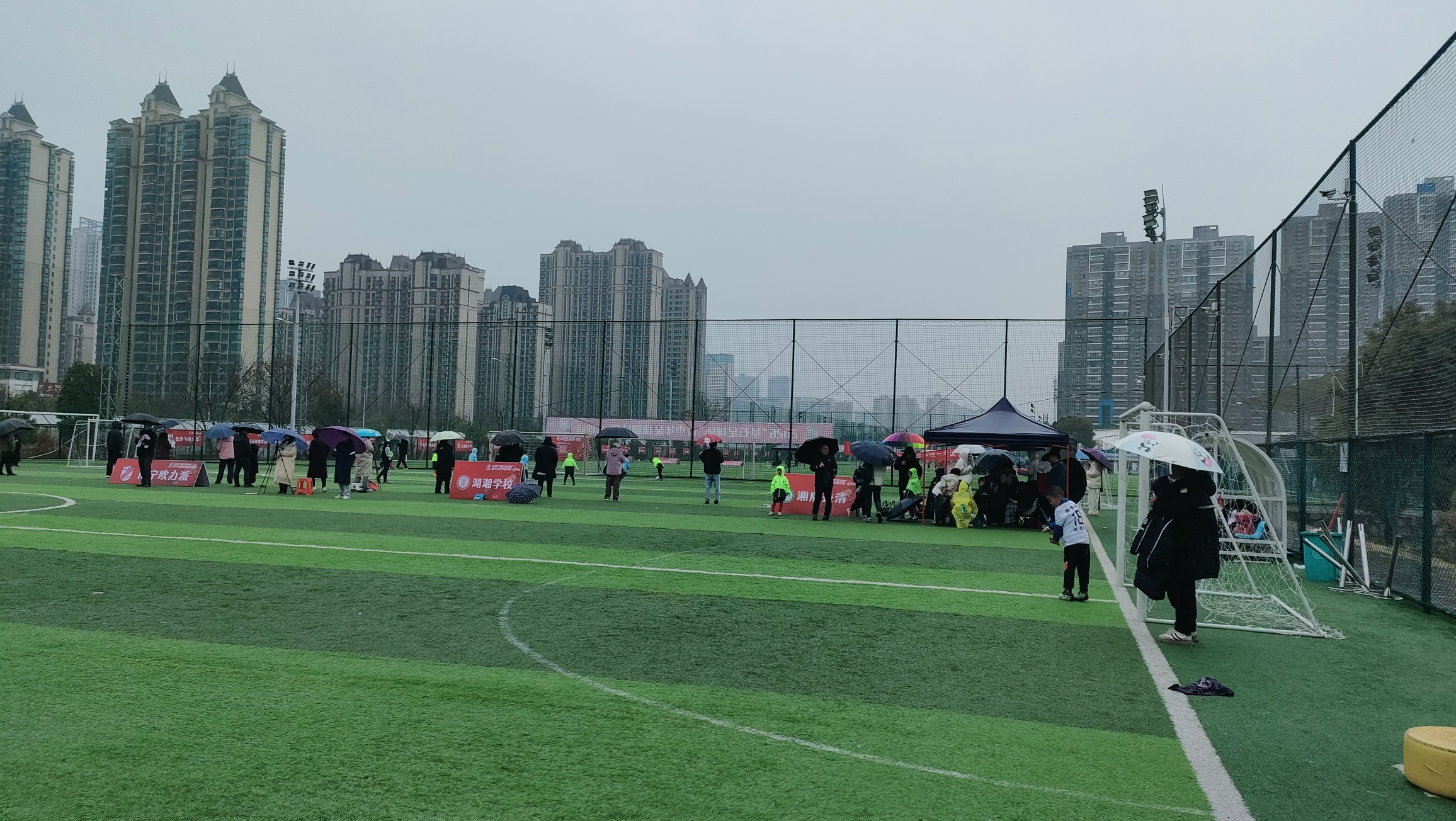 冬天而且下着雨,中国健儿都在比赛足球,中体也行的。