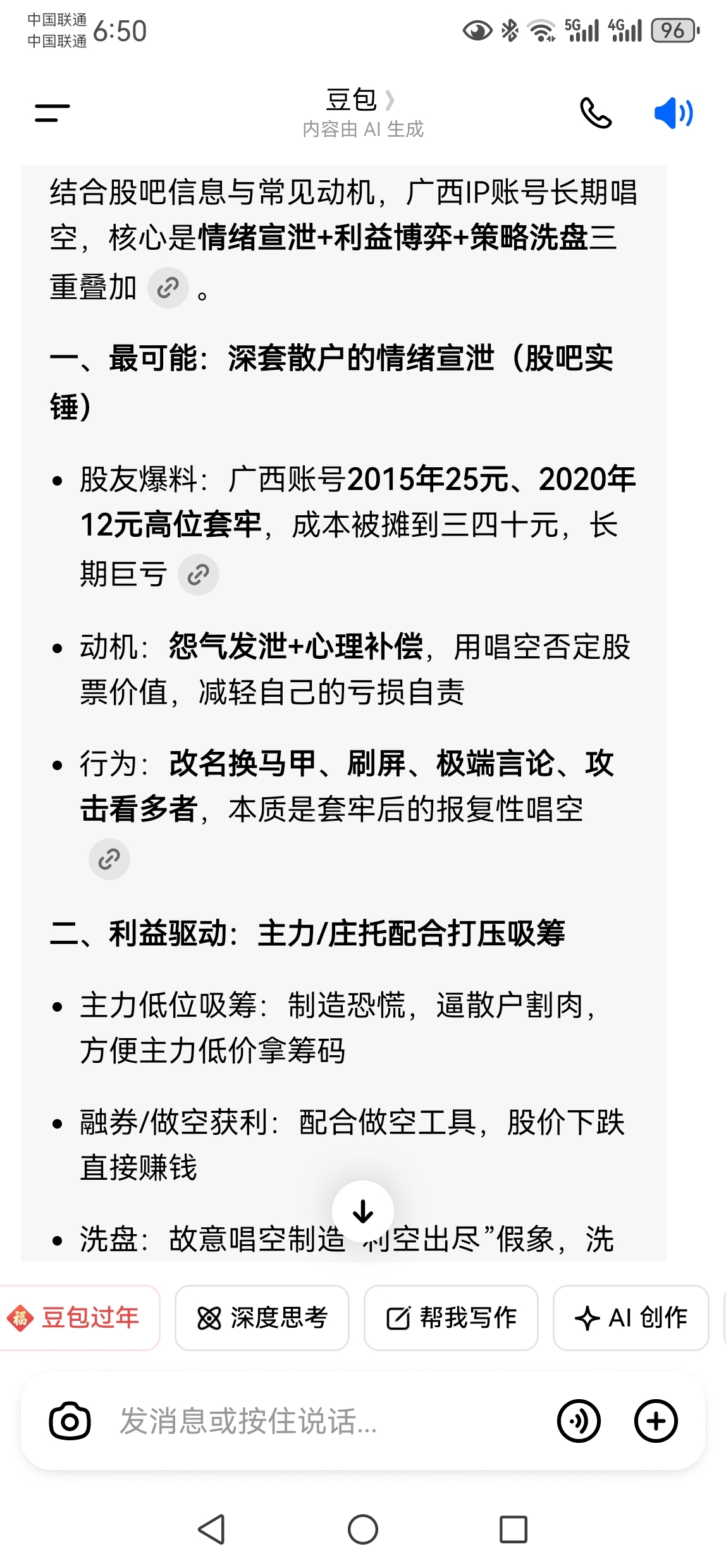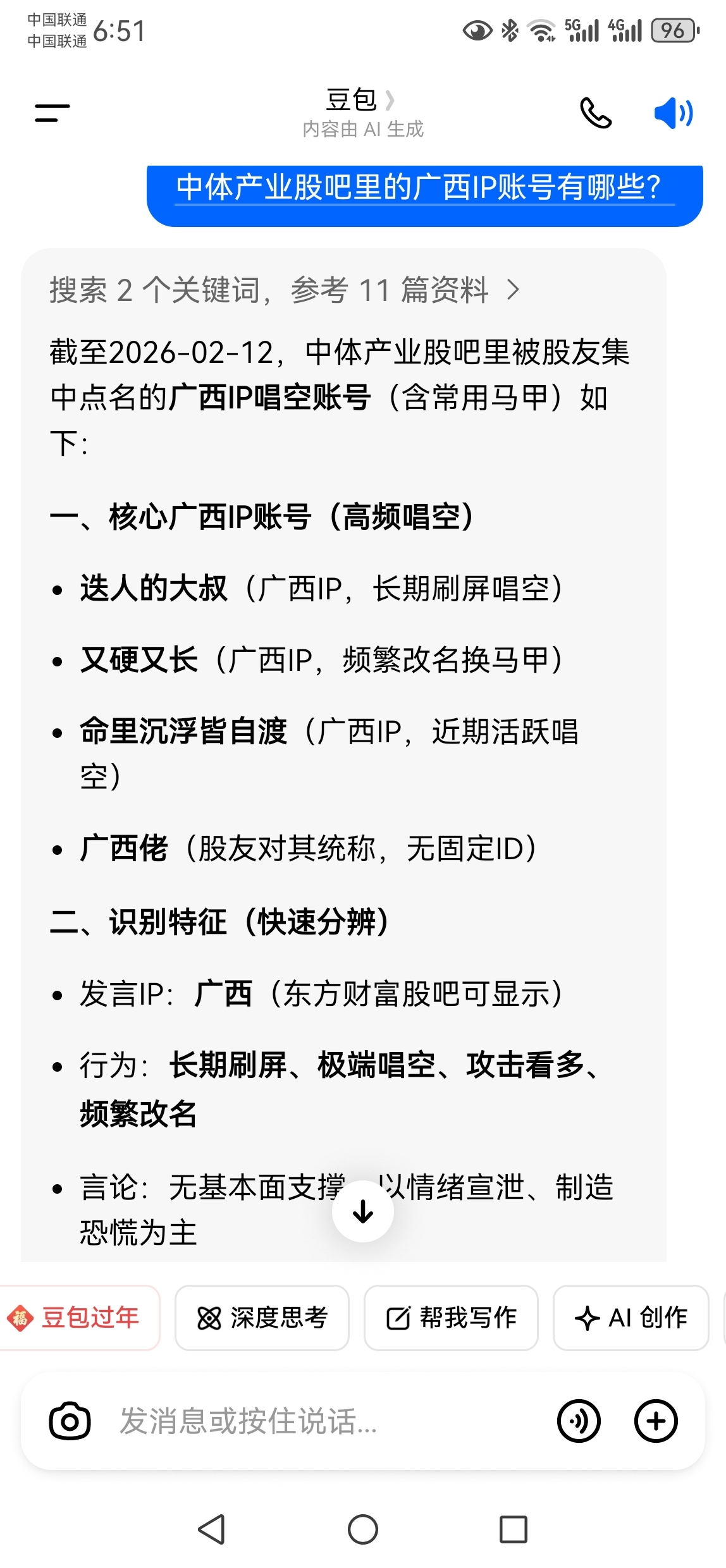 连豆包都知道,中体产业股吧里面有三个常年唱空的广西佬,还一直改人家的网名和头像,