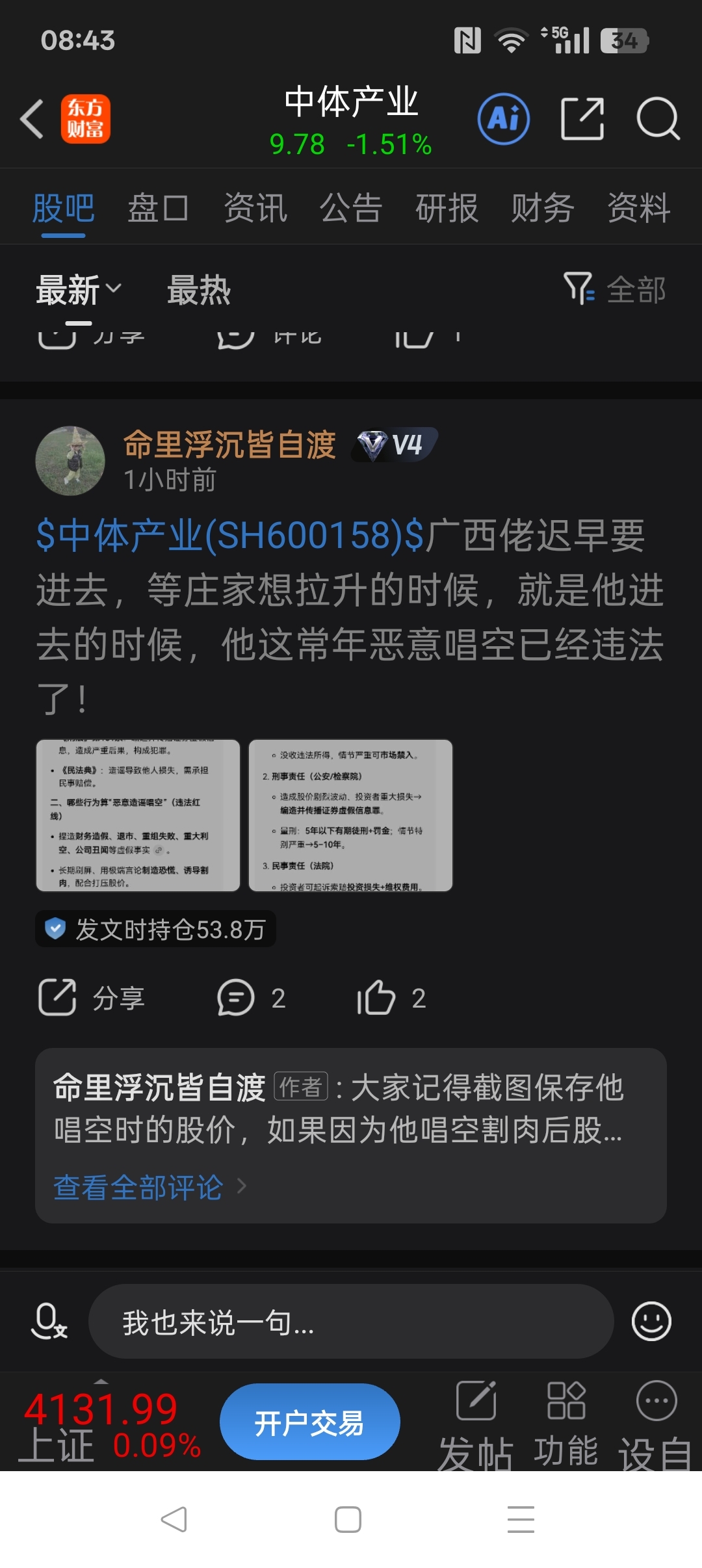 这个人发帖已经涉及严重违法了。第一点侮辱引导广西IP第二点严重违法暗示造谣什么有庄家。第3点豆包都知道中体产业长期的跑输市场看空属于基本事实行为。