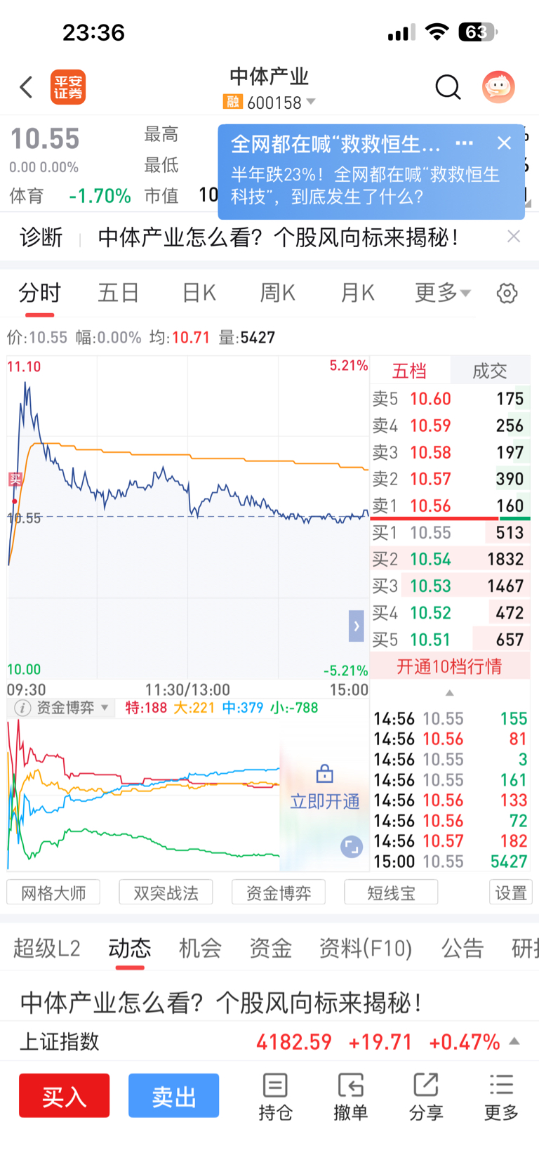 $中体产业(SH600158)$ 明天不会跌吧?我今天进了,而且仓位还有点重