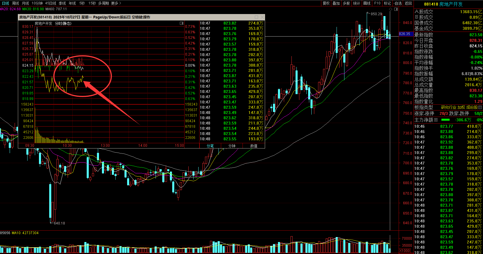 来了!今天房地产这条分时黄线上穿白线,那么大龙就会翻红。。。