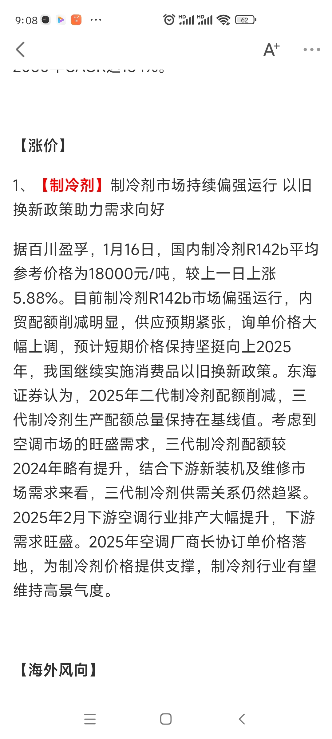 制冷剂继续涨