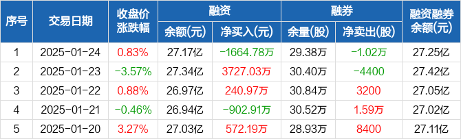 巨化股份:融资净偿还1664.78万元,融资余额27.17亿元(01-24)