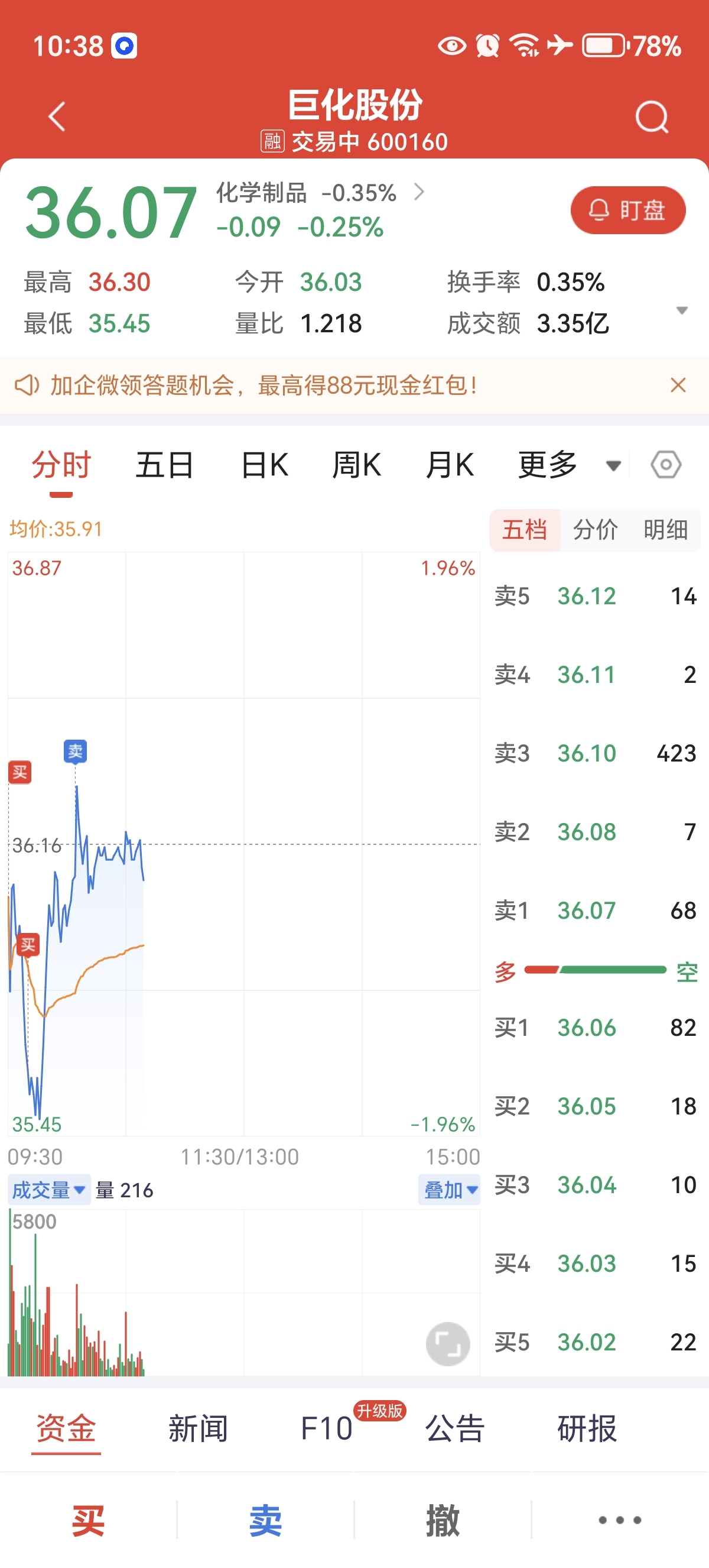 $巨化股份(SH600160)$ 既然上不去,那就下来接我吧