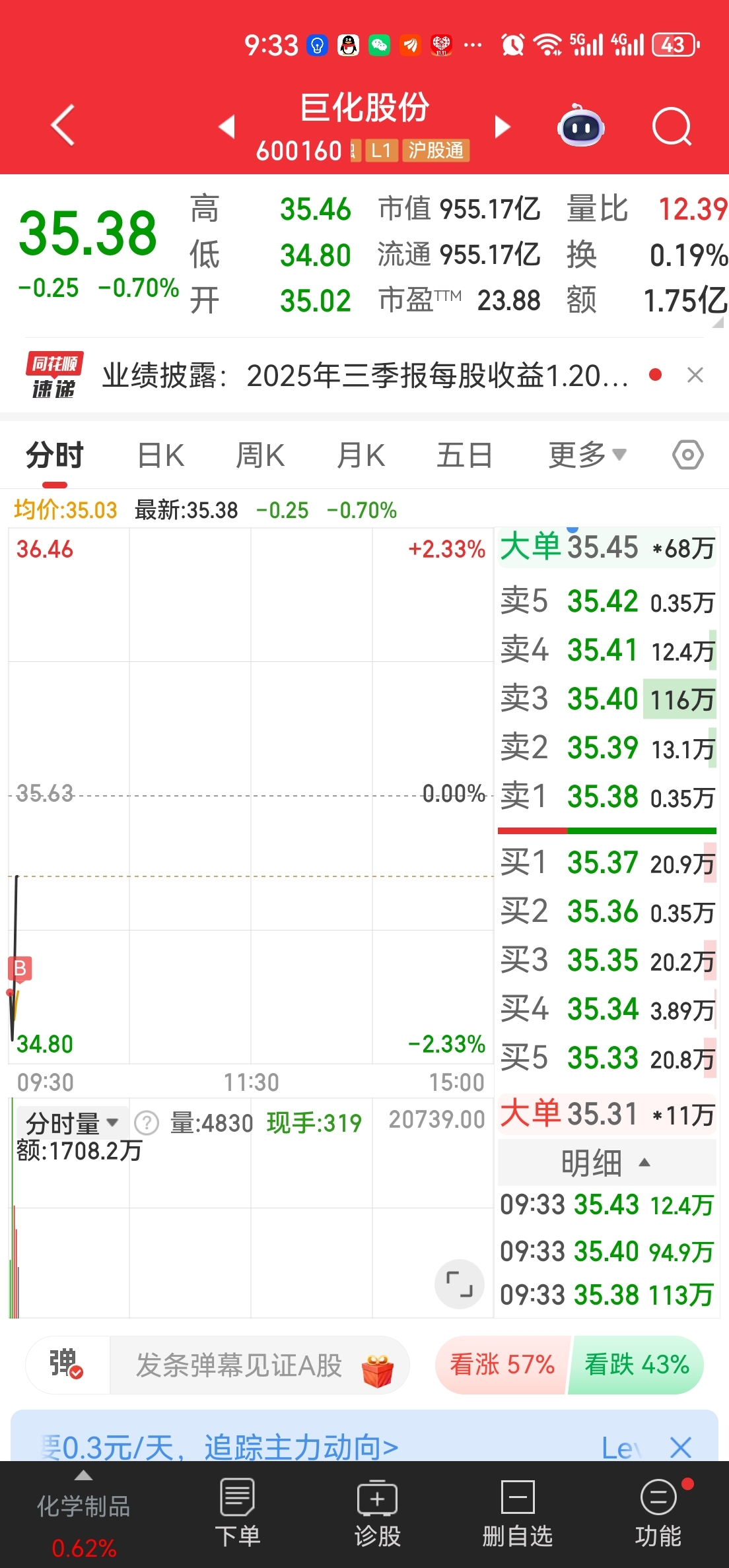 $巨化股份(SH600160)$ 家人们,我200万子弹,打上去了