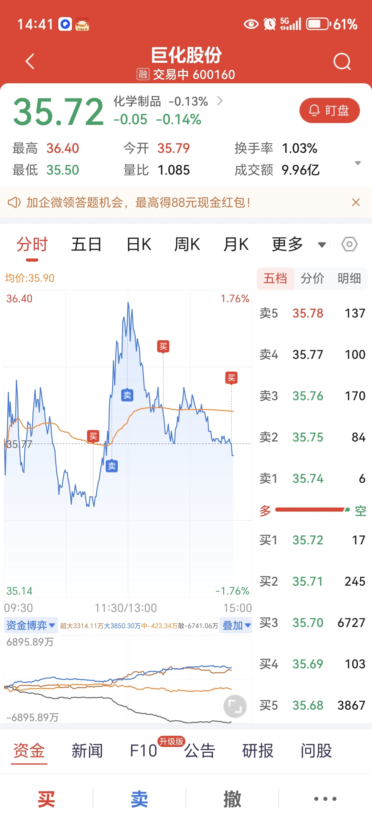 $巨化股份(SH600160)$ 太没劲了,错过了科技股,只能每天在巨化里头打滚