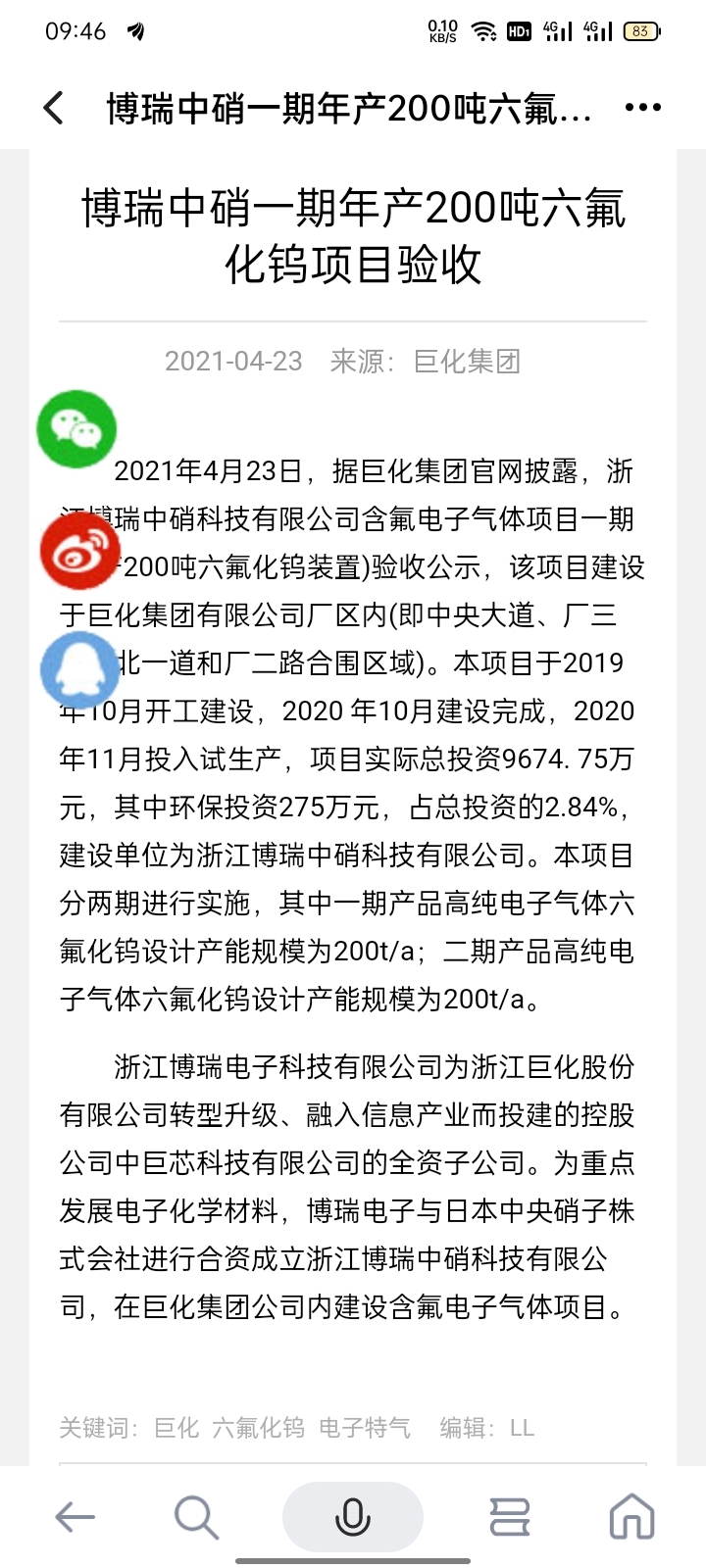 $巨化股份(SH600160)$