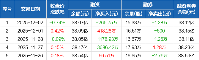 巨化股份:融资净偿还266.75万元,融资余额38.07亿元(12-02)