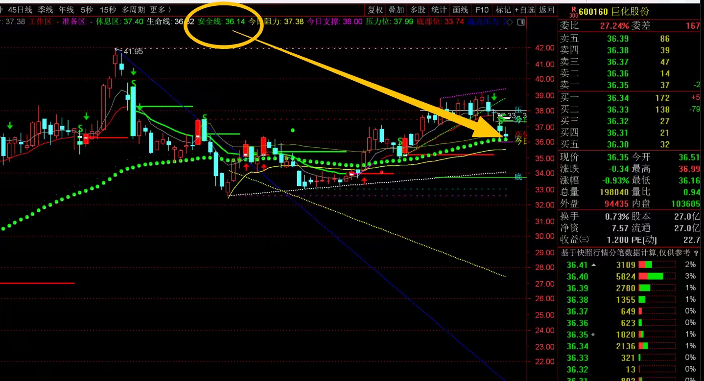 近期趋势不强,整体处于高位的横盘整理态势,短线主要看脚底安全线36.14位置的支