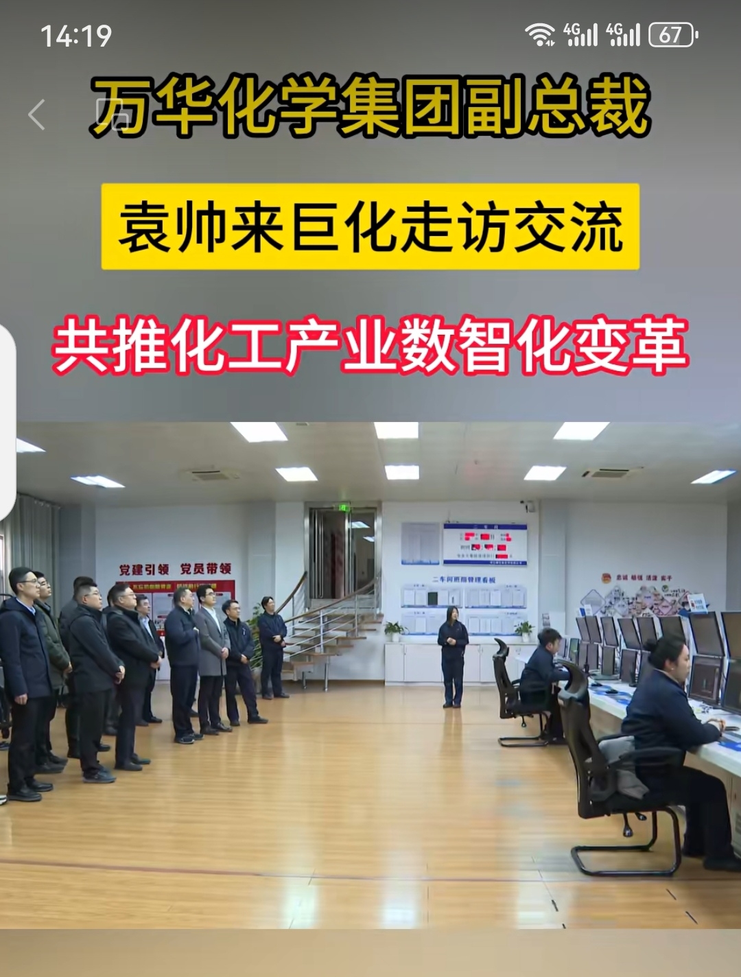 万华化学副总裁袁帅到巨化走访,双方就行业数字化、智能化转型进行深入交流。