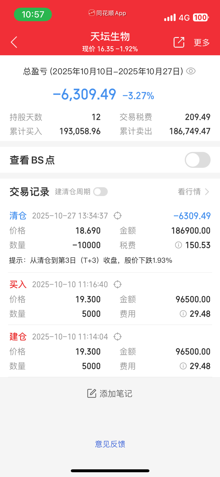 $天坛生物(SH600161)$ 好在走得快,少亏两万多