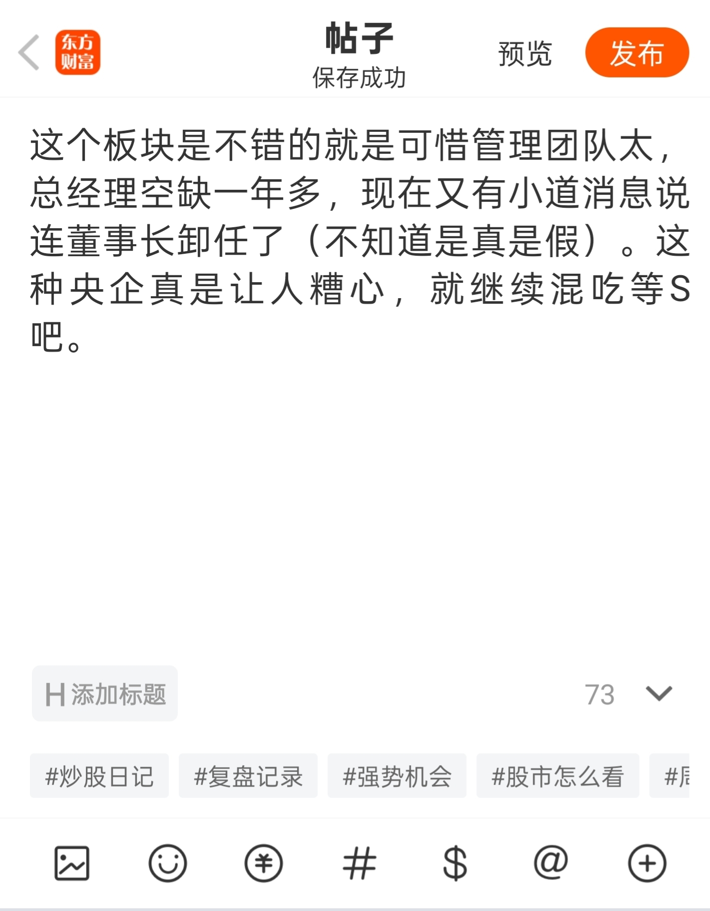 温馨提示: 1.根据《证券法》规定,禁止编造、传播虚假信息或者误导性信息,扰乱证券市场;2.用户在本社区发表的所有资料、言论等仅代表个人观点,与本网站立场无关,不对您构成任何投资建议。用户应基于自己的独立判断,自行决定证券投资并承担相应风险。《东方财富社区管理规定》