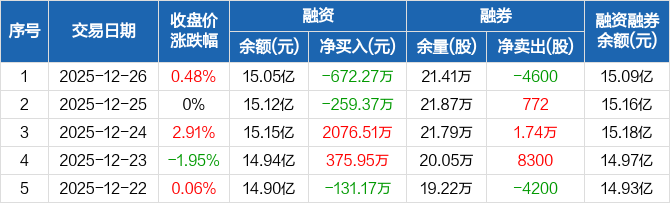 天坛生物:融资净偿还672.27万元,融资余额15.05亿元(12-26)