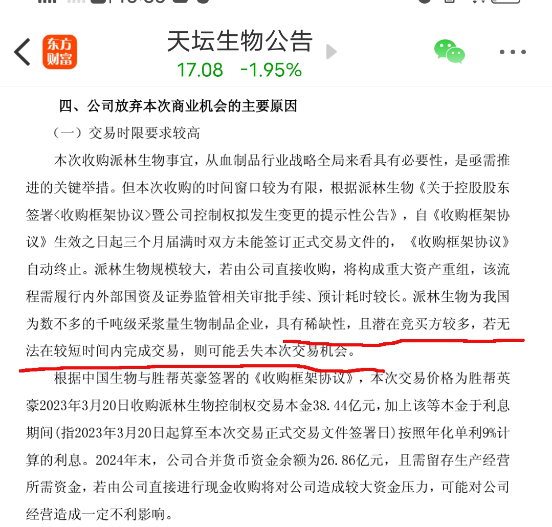 $天坛生物(SH600161)$ 天坛25年8月5日公告中提及$派林生物(SZ000403)$ ,表示潜在竞买方较多,能否公布一下潜在竞买方有哪些?23.51一股买派林还怕时间跨度太长买不上,丢失交易机会