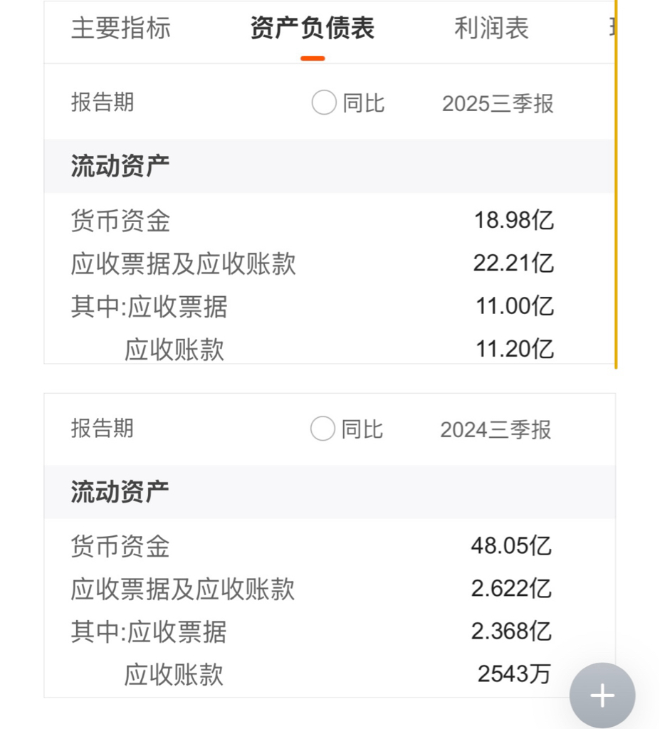 $天坛生物(SH600161)$ 看一下2024年第三季度应收账款2543万,到了2025年应收账款11.20亿足足50多倍,货币资金存款也从48亿变成2025的18亿。今年年报要是这么多应收账款如果也收不回来,那么是多大的利空不可想象。
