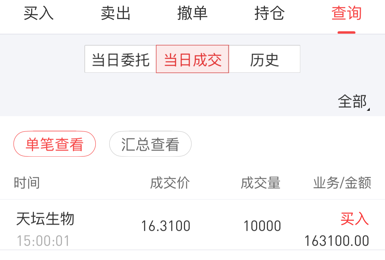 $天坛生物(SH600161)$ 气死了,没看时间忘记撤单了,也没想过能成交