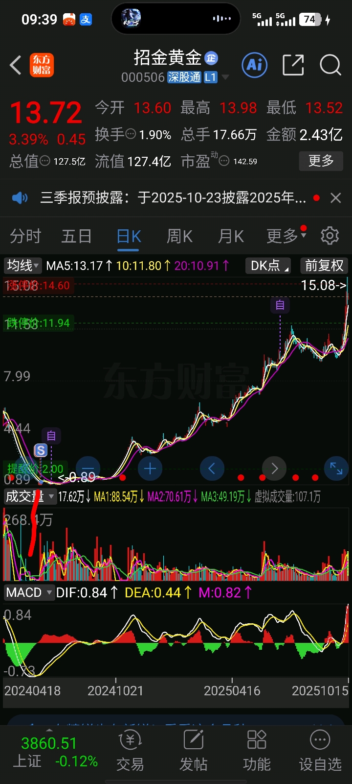 $香江控股(SH600162)$ 黄金不到一块入仓十万13倍我就吃一个板。