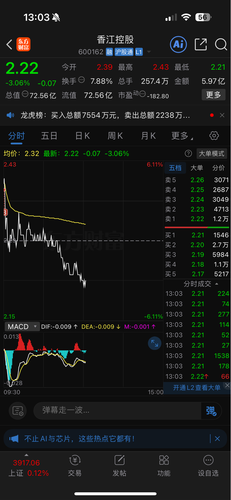 $香江控股(SH600162)$ 够渣,这个位置也砸