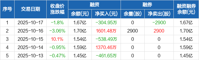 香江控股:融资净偿还304.95万元,融资余额1.67亿元(10-17)