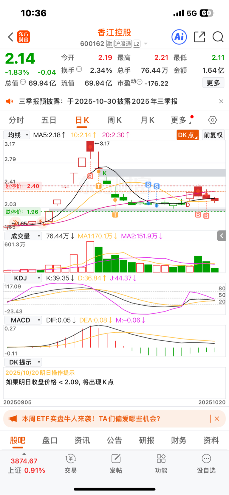 $香江控股(SH600162)$ 太对不起各位了,我一买就是跌,我可以买涨买跌了,