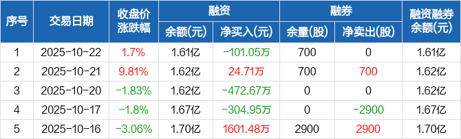 香江控股:融资净偿还101.05万元,融资余额1.61亿元(10-22)