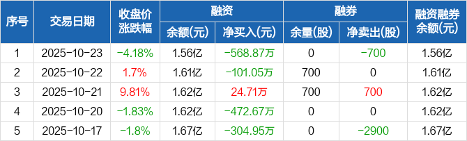 香江控股:融资净偿还568.87万元,融资余额1.56亿元(10-23)
