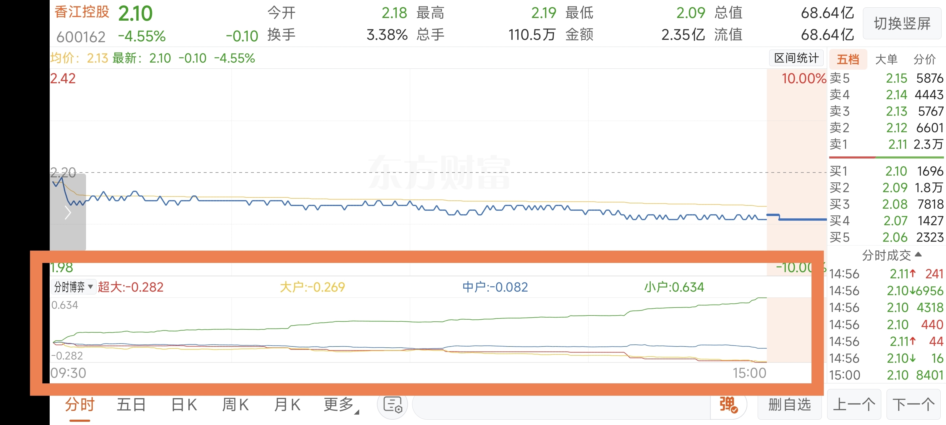 $香江控股(SH600162)$ 全是散户在接盘,大单大户全跑完了