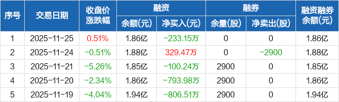 香江控股:融资净偿还233.15万元,融资余额1.86亿元(11-25)