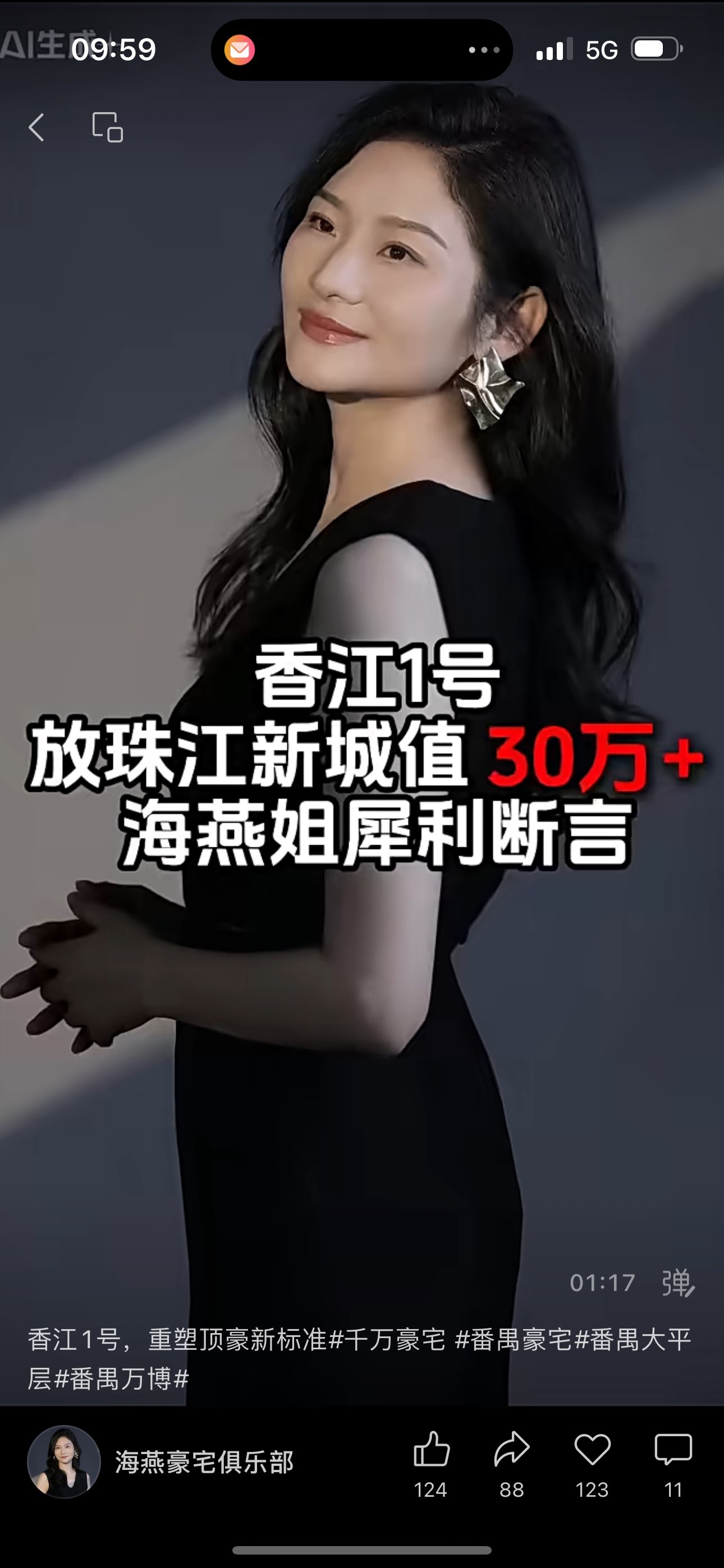 香江一号楼盘总建筑面积是29.8万平米,视频号网传价格在每平30w加,这样就是1