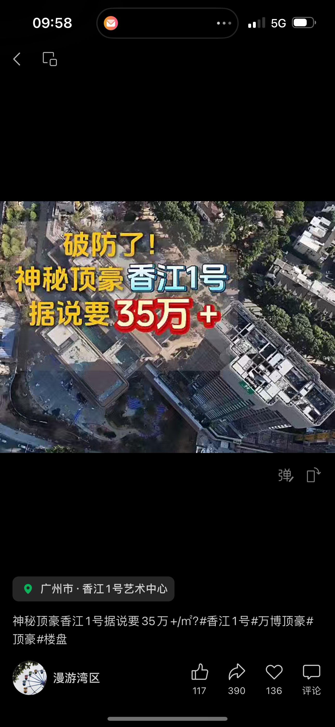 $香江控股(SH600162)$ 香江一号楼盘总建筑面积是29.8万平米,视频号网传价格在每平30w加,这样就是15倍,900亿元的货值,顶豪啊,而且大股东占比近7成,实际流通市值仅十几亿元!900亿元货值是总市值60亿元的15倍,而且20面前拿的地,拿地成本价极低,香江控股有望是跨年总龙头
