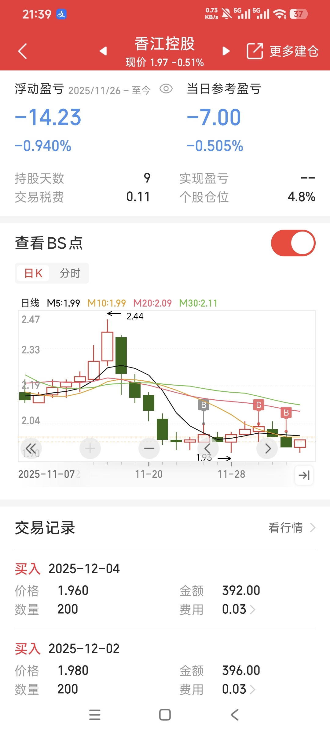 主力我错了,我真的错了。1.989的本,套我十天了,明天冲上2块钱我就走,不涨我