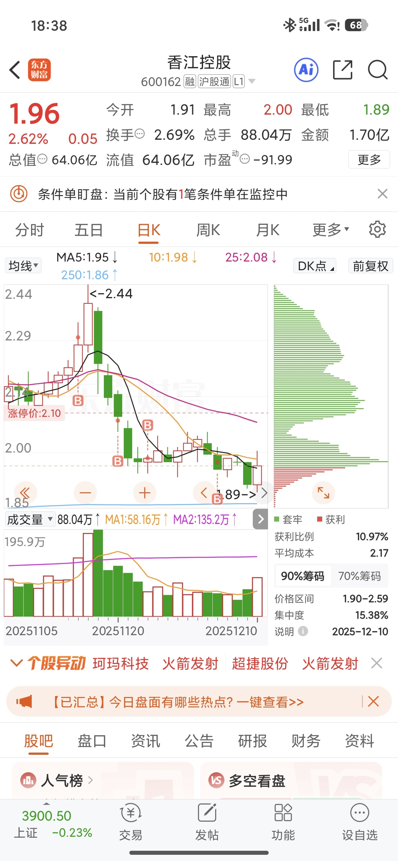 $香江控股(SH600162)$ 明天预测一下,高开涨6个点左右,然后平,