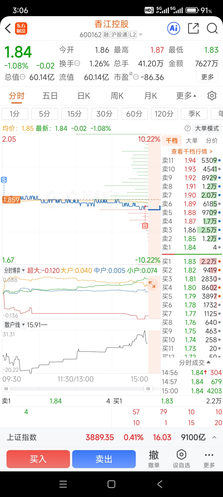 $香江控股(SH600162)$ 今天操作满意也不满意.....