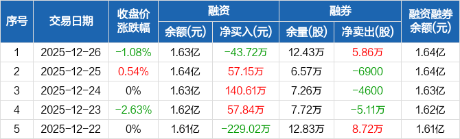香江控股:融资净偿还43.72万元,融资余额1.63亿元(12-26)