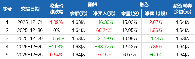 香江控股:融资净偿还46.3万元,融资余额1.63亿元(12-31)