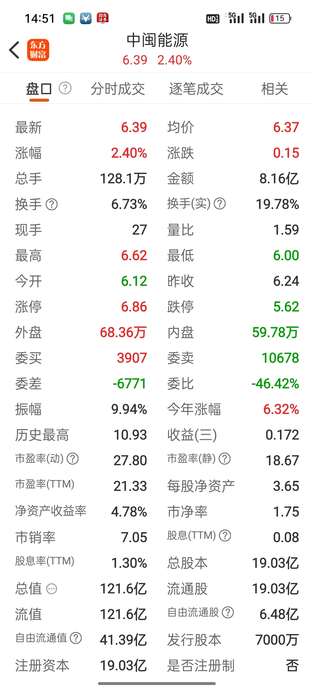 $中闽能源(SH600163)$