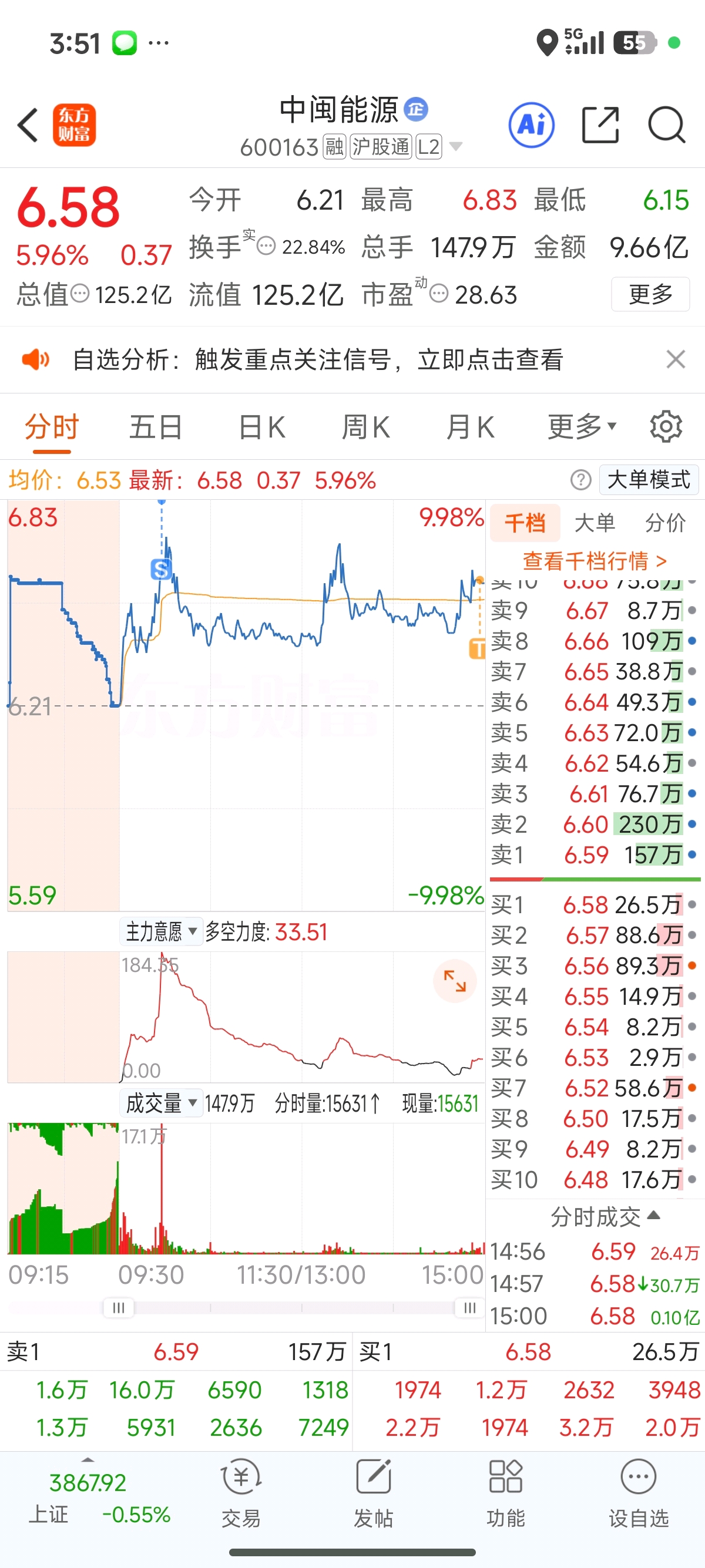 $中闽能源(SH600163)$ 留了400股。做一回看官。没有唱空 我会接回的