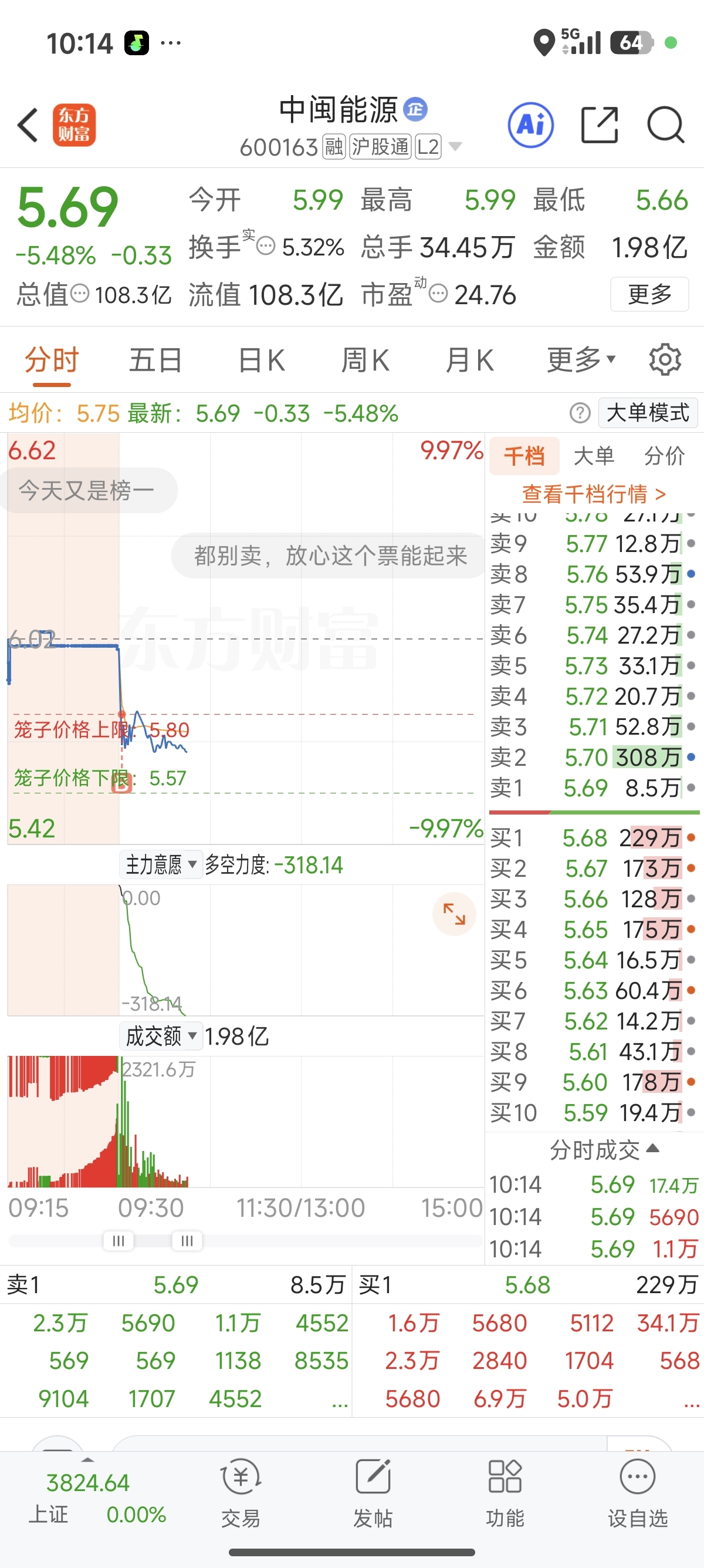 $中闽能源(SH600163)$ 还是建早了5.8 一层仓 手法不好 明天还跌 接着加仓