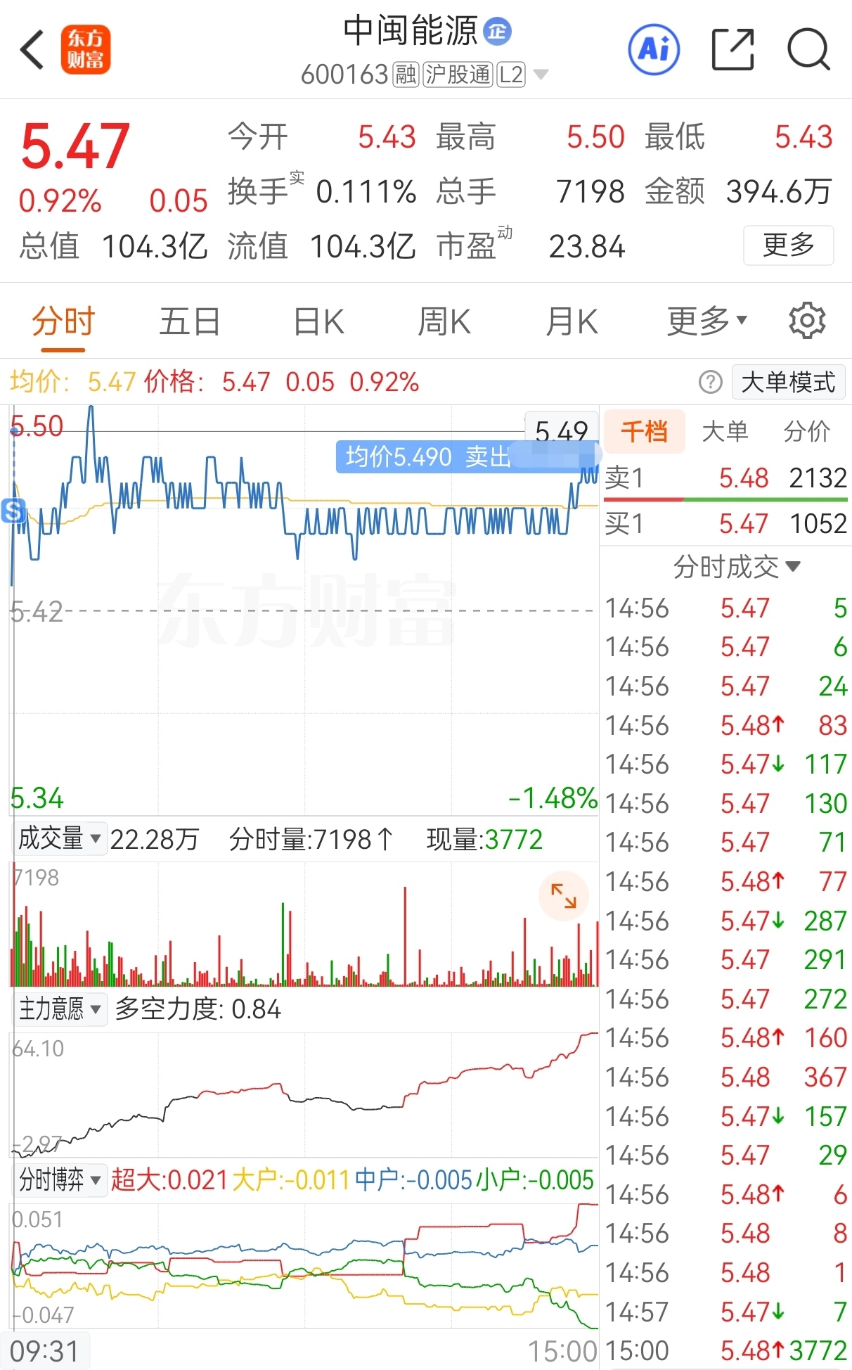今买明卖,5.42买,5.49卖,实盘隔夜套利中闽能源,成功收米走人!