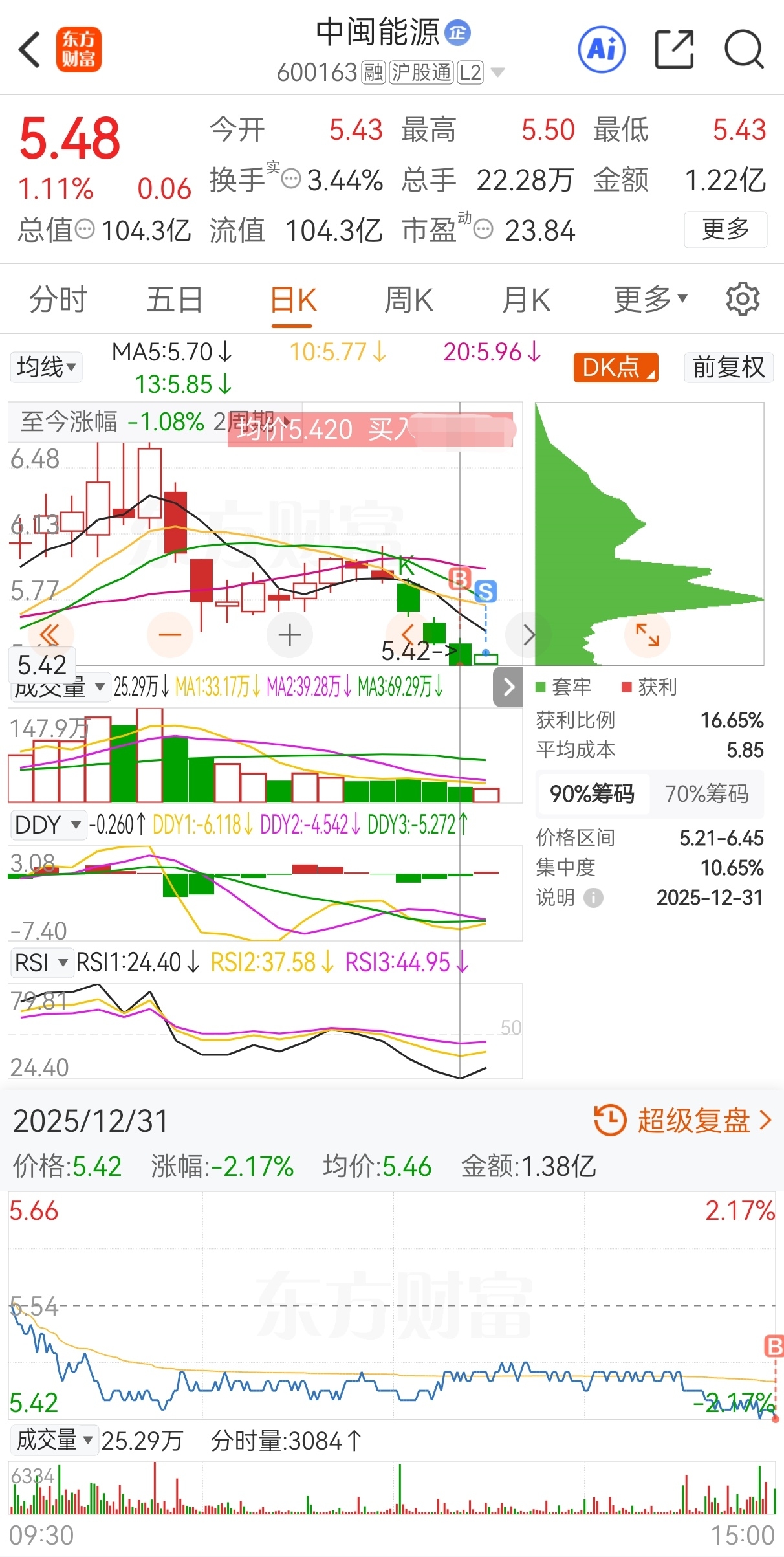 $中闽能源(SH600163)$ 今买明卖,5.42买,5.49卖,实盘隔夜套利中闽能源,成功收米走人!