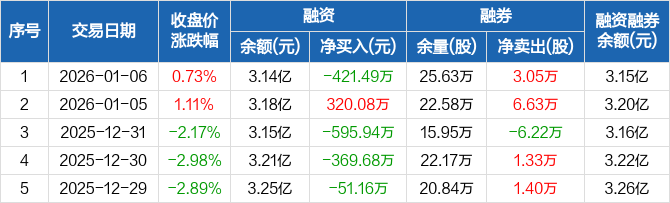 中闽能源:融资净偿还421.49万元,融资余额3.14亿元(01-06)